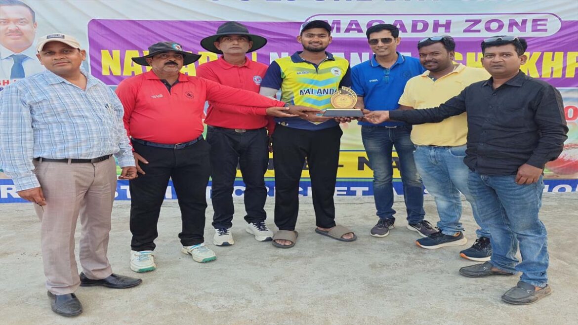 नालंदा की गेंदबाजी में आदित्य कुमार ने 10 ओवर में 56 रन देकर 4 विकेट तथा कप्तान सिद्धार्थ कुमार ने दो विकेट, नमन गौरव ने दो विकेट एवं अर्णव किशोर ने एक विकेट चटकाये।