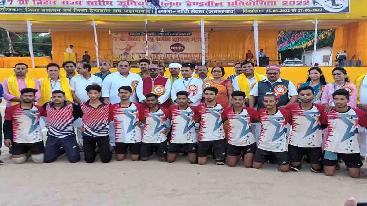 जहानाबाद। सातवें बिहार राज्य जूनियर बालक हैंडबॉल प्रतियोगिता के दूसरे दिन मुख्य अतिथि सांसद जहानाबाद चंदेश्वर चंद्रवंशी, विशिष्ट अतिथि विधान परिषद इंजीनियर सच्चिदानंद राय ने खिलाड़ियों से परिचय प्राप्त कर उनका हौसला अफजाई की तथा शुभकामनाएं दी।