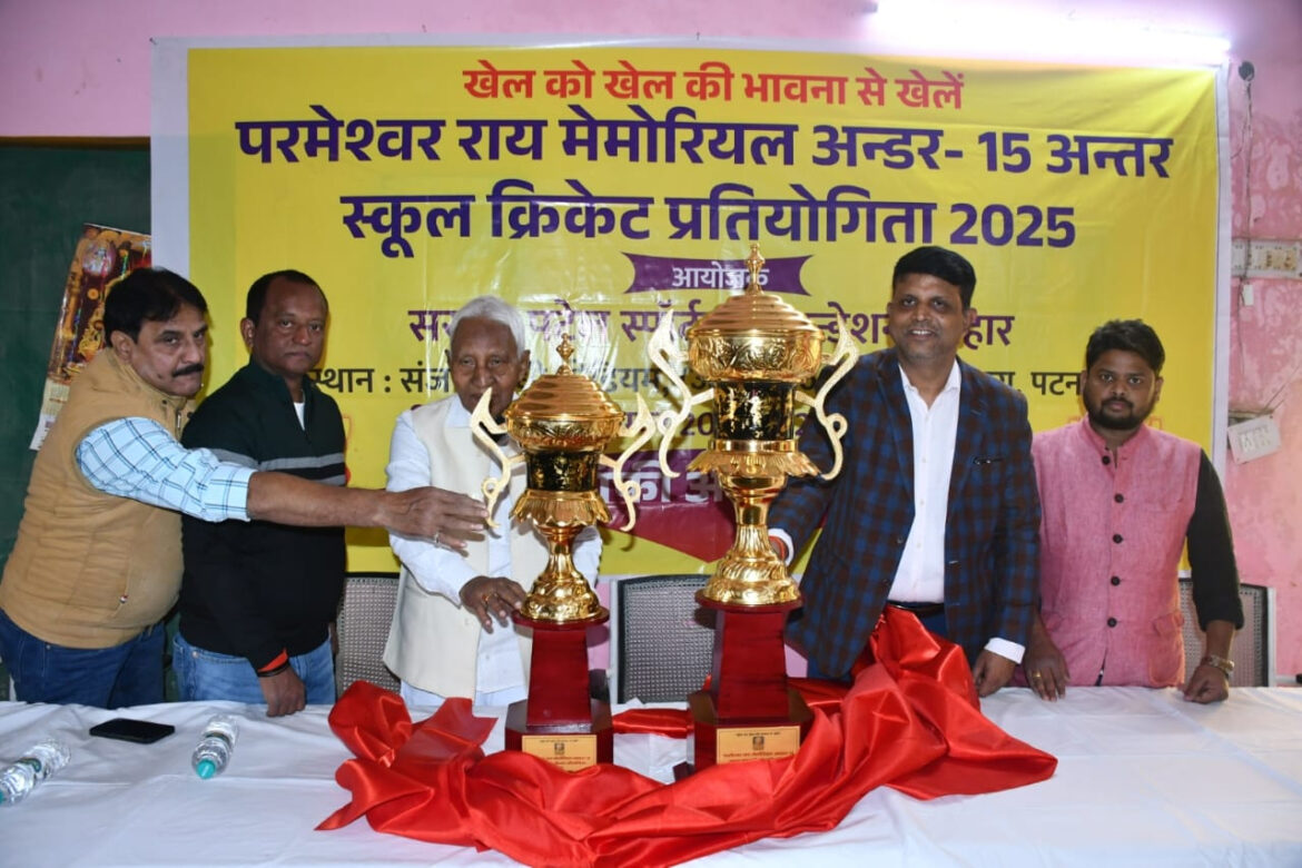 पटना, 26 नवंबर। आगामी 2 दिसंबर से शुरू होने वाले परमेश्वर राय मेमोरियल अंडर-15 इंटर स्कूल क्रिकेट टूर्नामेंट की ट्रॉफी का गुरुवार को अनावरण किया गया। स्थानीय संजय गांधी स्टेडियम (जीएसी ग्राउंड) में ट्रॉफी का अनावरण पटना के पूर्व महापौर श्याम बाबू राय, पटना मेयर प्रतिनिधि शिशिर कुमार, पूर्व वार्ड पार्षद अविनाश कुमार मंटू, पटना फुटबॉल संघ के सचिव मनोज कुमार, सुमित एंड शर्मा स्पोट्र्स के एमडी सुमित शर्मा ने किया।