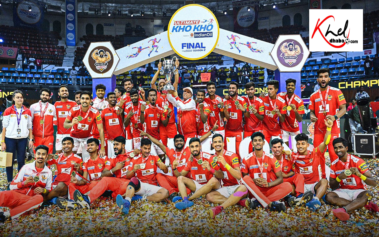 कटक, 14 जनवरी। संकेत कदम के तीन शानदार ड्रीम रन की बदौलत गुजरात जायंट्स ने अल्टीमेट खो खो का दूसरा सीजन जीत लिया है। उसने शनिवार को जवाहरलाल नेहरू स्टेडियम में खेले गए फाइनल में चेन्नई क्विक गन्स को 31-26 से हराया। गुजरात की टीम पहली बार चैंपियन बनी है। चैंपियन टीम को 1 करोड़ रुपये का पुरस्कार मिला। उपविजेता को 50 लाख रुपये मिले। मेज़बान और पहले सीजन के विजेता ओडिशा जगरनट्ट्स ने तेलुगू योद्धाज को 32-24 के अंतर से हराकर तीसरा स्थान हासिल किया। तीसरा स्थान पाने वाली टीम को 30 लाख रुपये मिले।