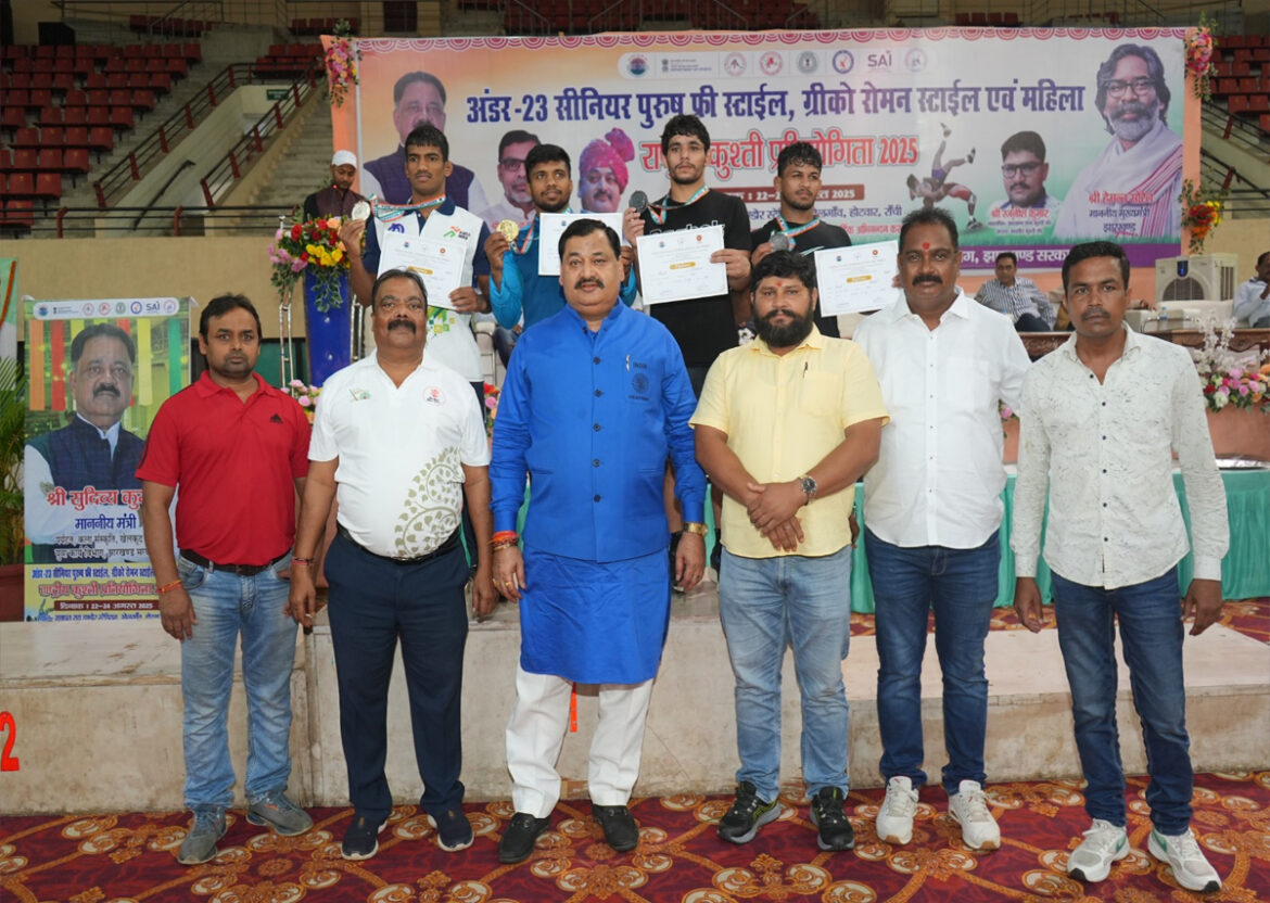 रांची, 24 अगस्त। स्थानीय गणपत राय इनडोर स्टेडियम खेलगांव में रविवार को अंडर-23 सीनियर पुरुष फ्री स्टाइल, ग्रीको रोमन एवं महिला राष्ट्रीय कुश्ती प्रतियोगिता- 2025 का भव्य समापन हुआ। यह प्रतियोगिता झारखंड राज्य कुश्ती संघ के द्वारा एवं खेल निदेशालय झारखंड के सहयोग से की गई थी। प्रतियोगिता के आखिरी दिन ग्रीको रोमन शैली में झारखंड की झोली में एक कांस्य पदक आया। अभिषेक ने यह कांस्य पदक 60 किलोग्राम भार वर्ग में जीता।