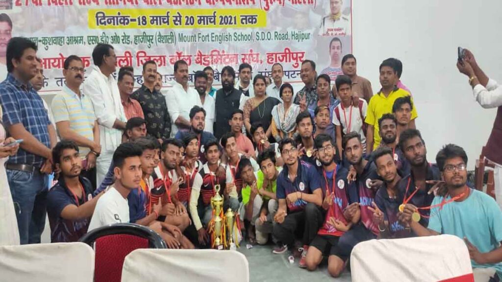 हाजीपुर। बिहार राज्य बॉल बैडमिंटन संघ के तत्वावधान में एवं वैशाली जिला बॉल बैडमिंटन संघ के द्वारा कुशवाहा आश्रम हाजीपुर में खेली जा रही 27वीं बिहार राज्य सीनियर बॉल बैडमिंटन चैंपियनशिप के पुरुष वर्ग के फाइनल मैच में नवगछिया ने सिवान को 35-31,35-19 से पराजित कर विजेता होने का गौरव प्राप्त किया। जबकि महिला वर्ग के फाइनल मुकाबले में गत वर्ष की विजेता वैशाली ने सारण को संघर्षपूर्ण मुकाबले में 35-30,17-35,35-21 से पराजित कर लगातार पाँचवीं बार खिताब पर कब्जा जमाया।